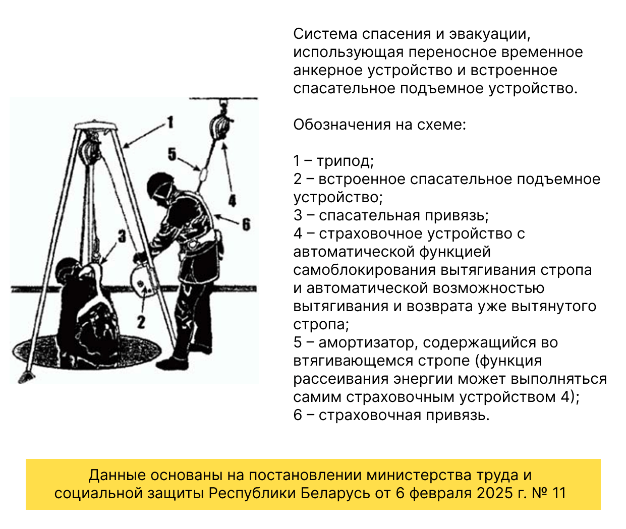 В новых правилах охраны труда указано, что эвакуация работника с высоты может проводиться с использованием средств защиты втягивающего типа (СЗВТ) со встроенной лебедкой . Это решение позволяет безопасно поднимать или спускать пострадавшего при минимальном риске для эвакуатора.