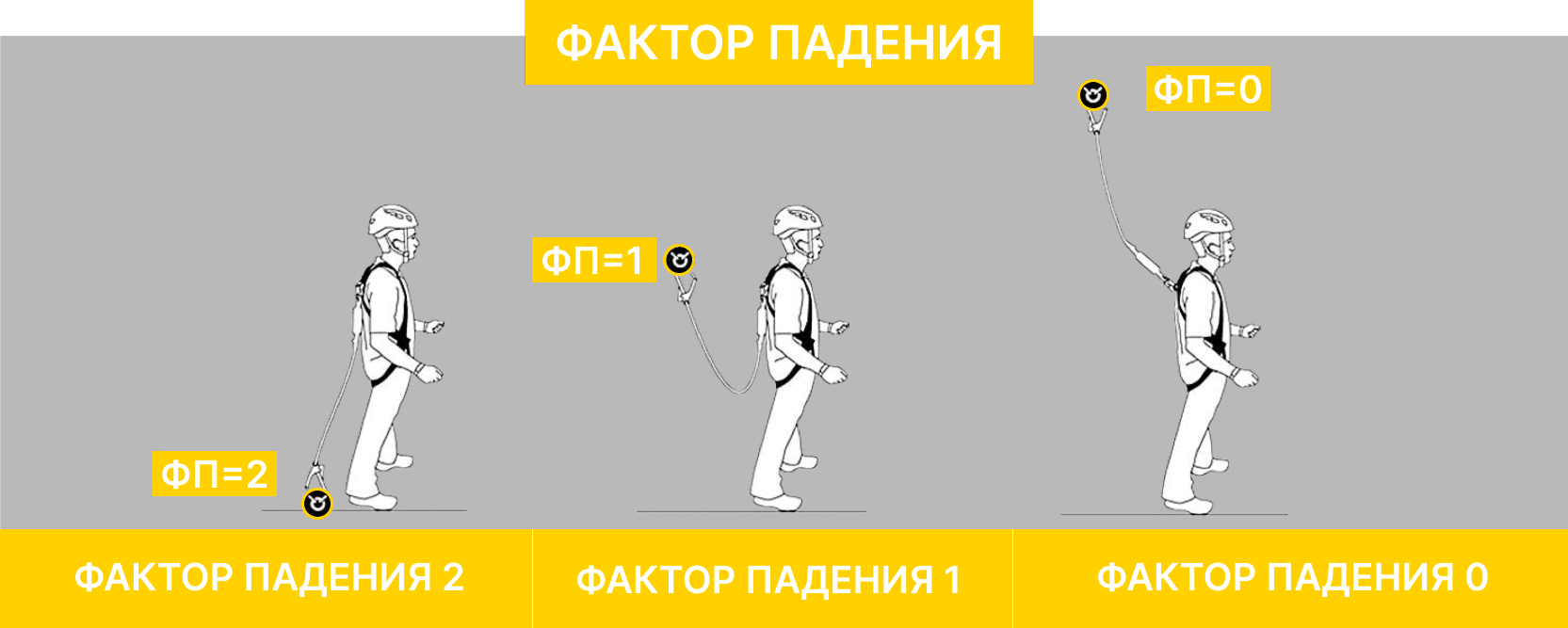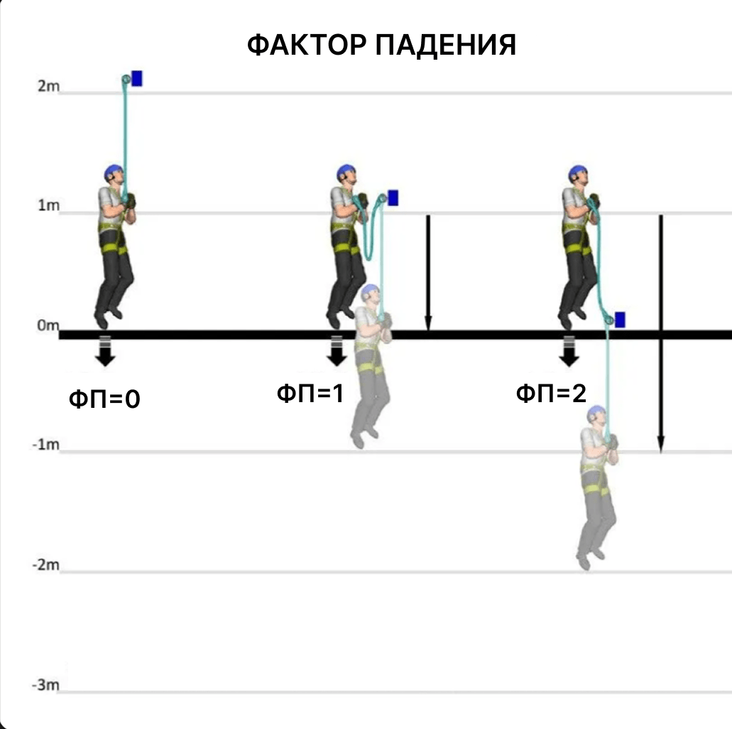 Он показывает, насколько сильной будет нагрузка на человека и страховочную систему в момент остановки падения. Говоря простыми словами, фактор падения — это отношение высоты свободного падения к длине страховочной системы.